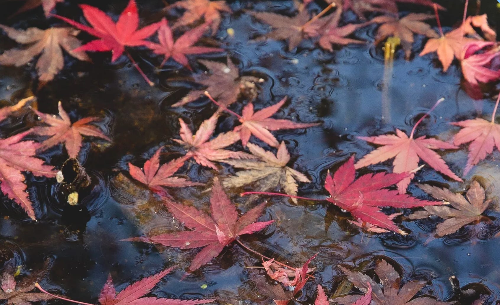 The Sheriff leaned against his patrol vehicle and called it in, studying the big leaf maple leaves floating in puddles that reflected the stormy sky.